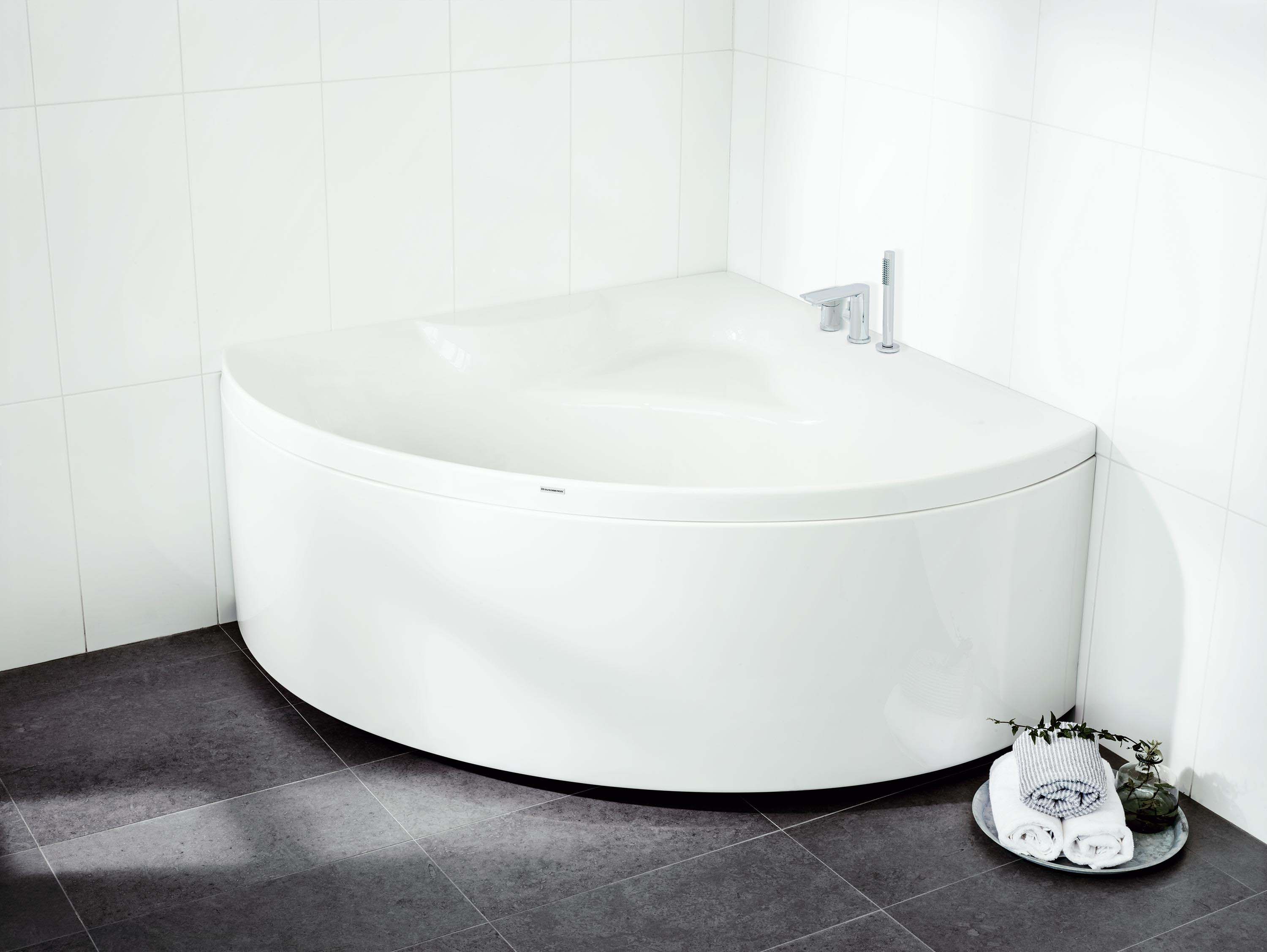 Hörnbadkar akrylbadkar Pite 140x65x140 vit med front och sargmonterad blandare Helag.
