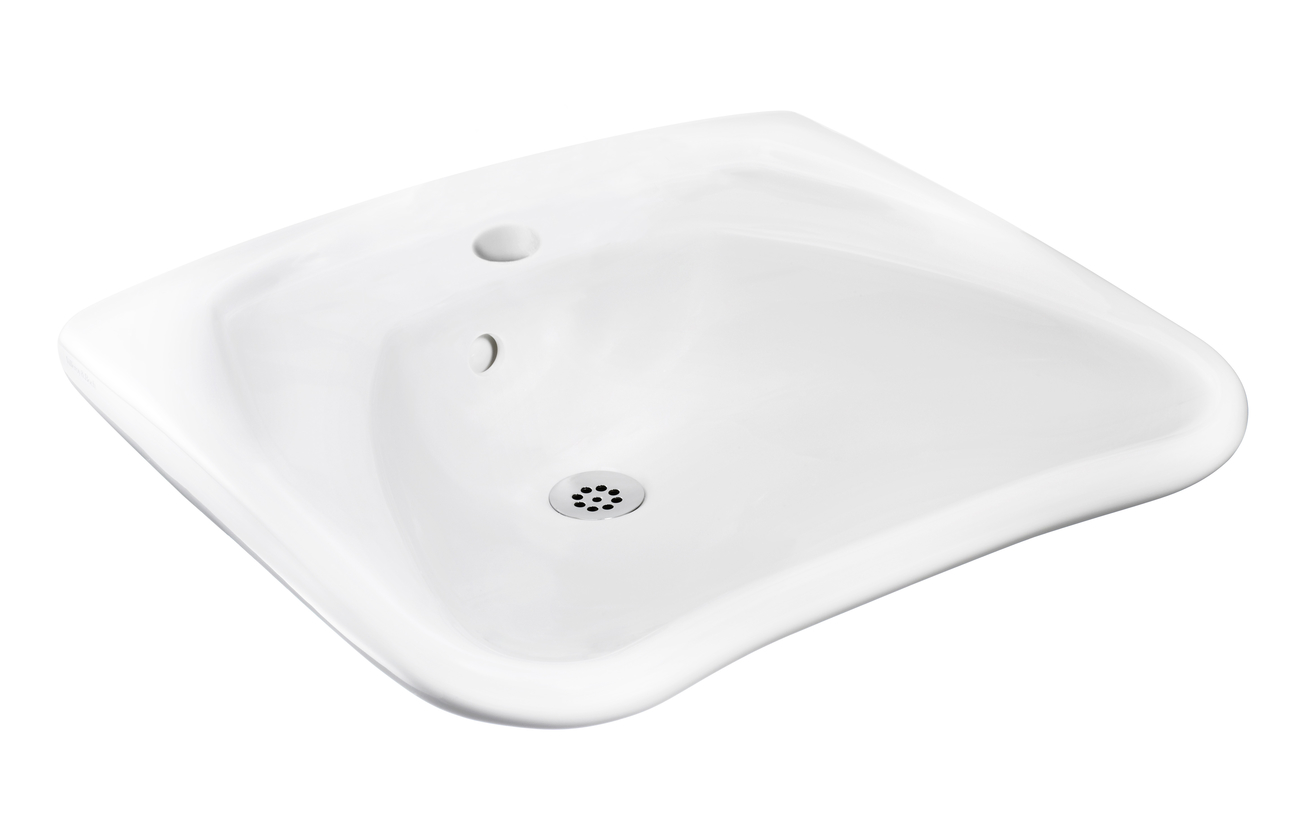 Utan blandare. Mått 600 x 490 mm. Avsett främst för sjukhus och handikapanpassade bostäder.