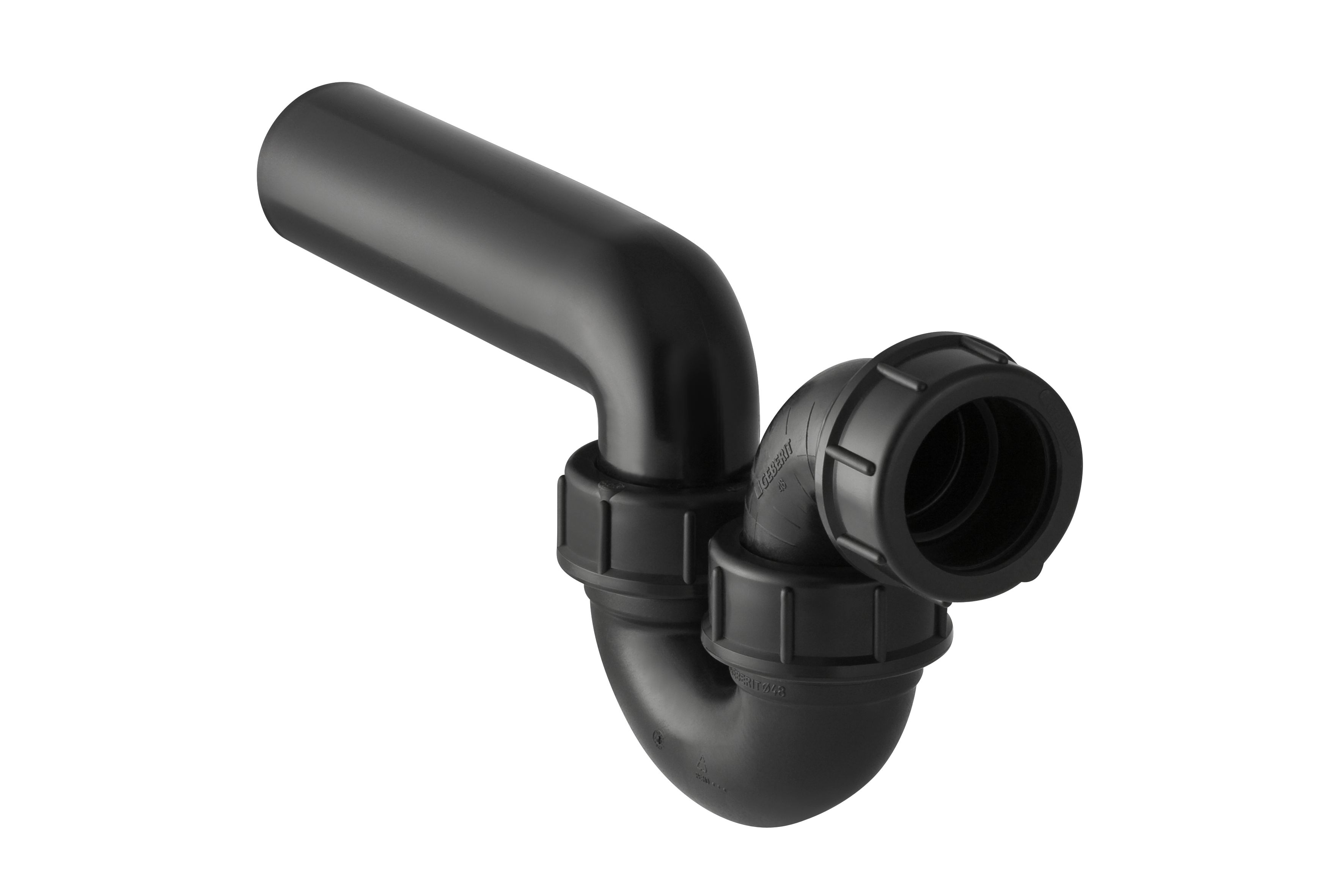 Geberit vattenlås för tvättställ, med klämringskoppling, horisontellt inlopp och horisontellt utlopp: d40 d1=40 Svart