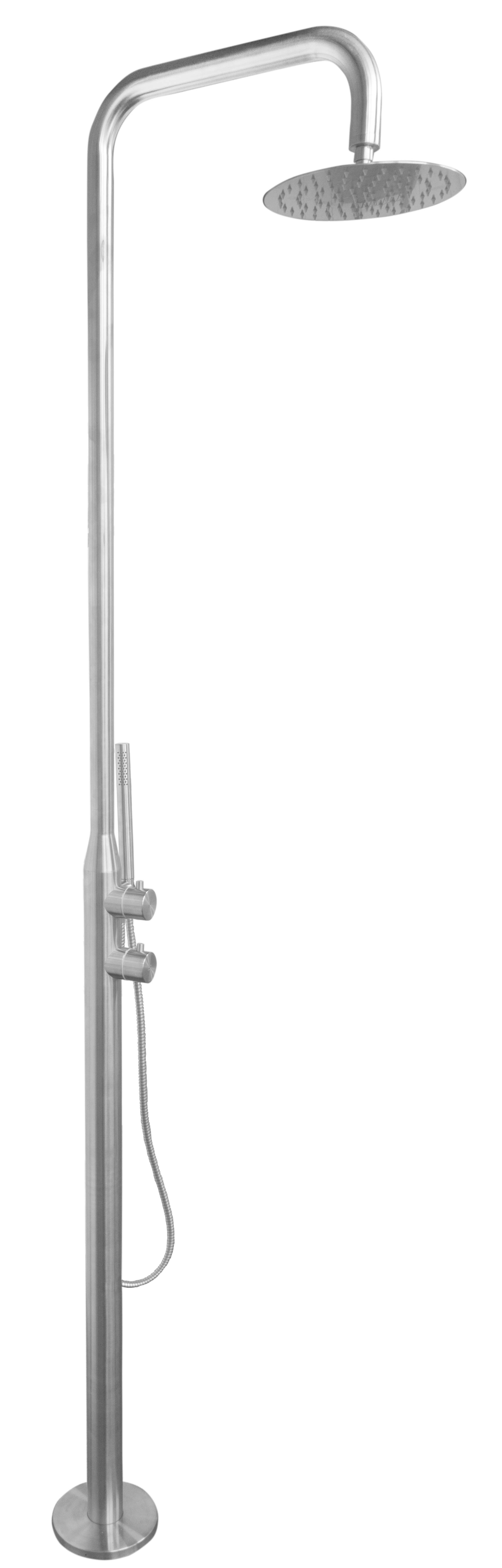 Exklusiv och elegant utomhusdusch i syrafast 316-stål.Mattborstat stål.