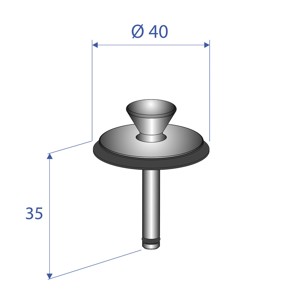 Propp till bottenventil med slät silöverdel. Med avtätning och o-ring.