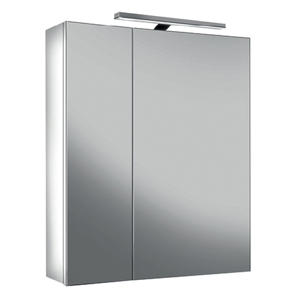 Spegelskåp med 2 st. assymetriska spegeldörrar, 2 st glashyllor & LED-belysning, vit.