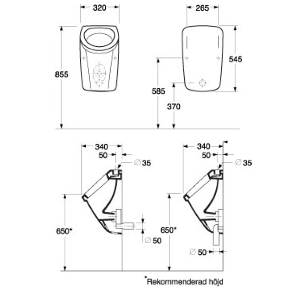 GBG URINAL 7G50 FÖR ÖPPET V-LÅS OBS!V-LÅS INGÅR EJ