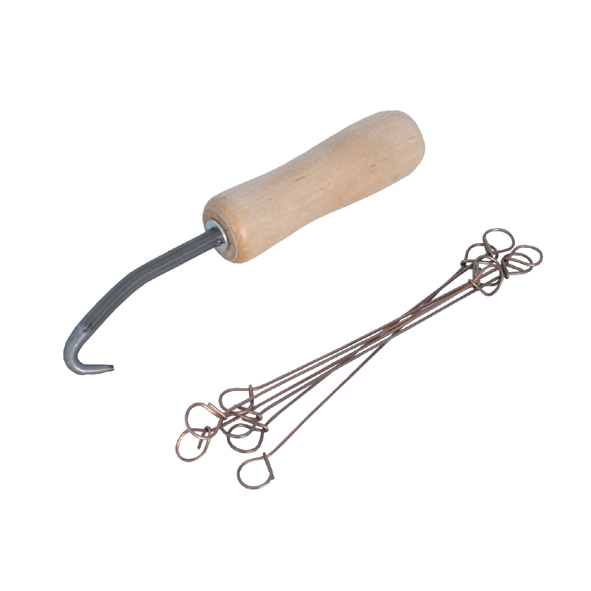 Najtråd (säljes per förp.)och najverktyg för fastsättning av pePex-rör vid armeringsnät.