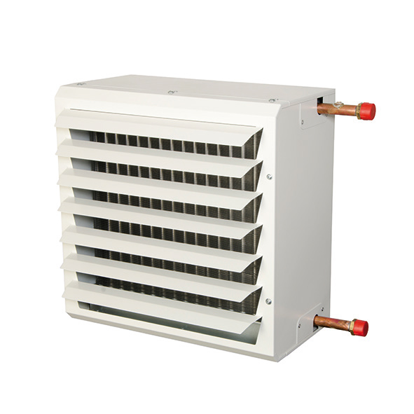Väggmonterad luftvärmare för uppvärmning av industri, lager och handelslokaler. Hölje i elförzinkad stålplåt, epoxilackerad vit (RAL 9016). Miljöklass C2. Vattenbatteri av AL/CU med gängade anslutningar. Monteras med väggkonsol (tillbehör) som medger lutning av fläkten 0, 15 eller 30°. Luftriktare ingår. 230V. Fläkthastigheten kan varieras med 5-stegs trafo. Data vid 80/60-15°C. Ljudnivå på 5 m avstånd. 2st/Fp.