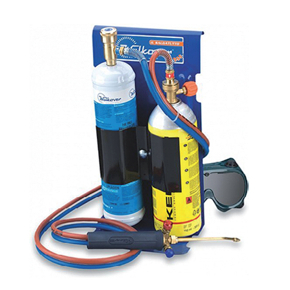 Med tryckregulatorer, backventil, två svetsmunstycken (40 + 50 l), Mapp-gas och Oxygen. 7/16” EN417.