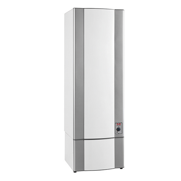 Varmvattenberedare med komplett ventilarrangemang. Monteras stående.