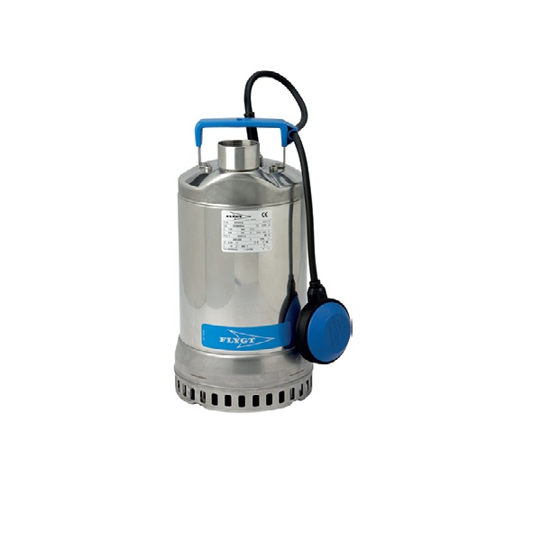 Rostfri dränkbar pump med nivåvippa. Passar även för inst. med kont. drift. 0,55 kW, 1-fas.
