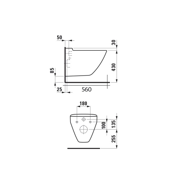 Vägghängd WC-skål utan sits. Bultar c/c 180 mm. Hårdsits med Soft close och Quick release köps separat.