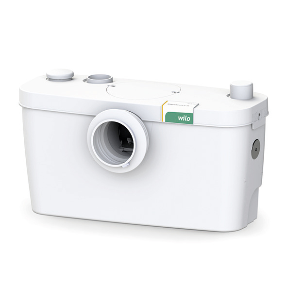 Automatisk pumpstation med skärverk för installation av WC med P-lås och t.ex. tvättställ. Maxtemp = 35°C. 230 V. 0,4 kW. Utlopp 32/40 mm. Tryckledning (höjd/längd) 1 m / 90 m -> 5 m / 20 m.