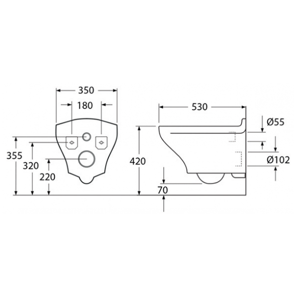 Vägghängd WC-skål. Tätsintrat porslin behandlat med Ceramicplus.
