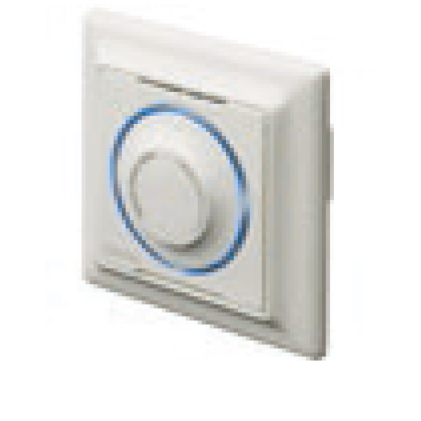Trådbunden termostat med tryckt skala på vredet. Kopplas med fyrledad kabel.