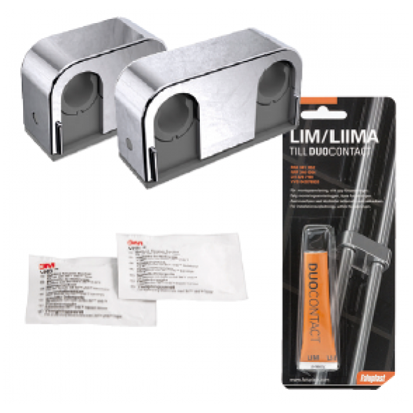 Rörklammer med limplatta. För dim. 12, 15 & 16 mm. Rengöringsservetter och lim köps separat.