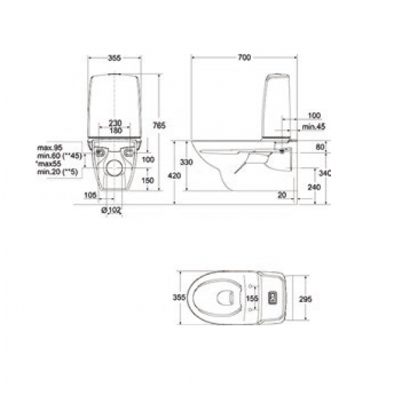 WC-stol 2/4 l för väggmontage.