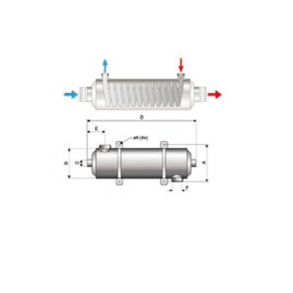 Spiralvärmeväxlare tillverkad i rostfri syrafast stål. Används vid fjärrvärmeinstallationer.