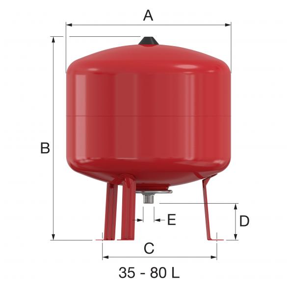 Expansionskärl med EPDM gummibälg. Utan armatur, för värme- och kylsystem. Max 50% glykolblandning.