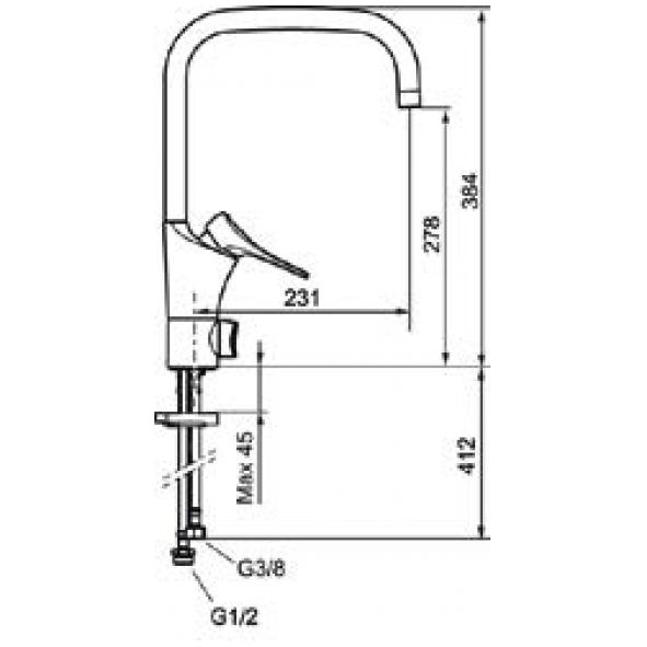 Disklådsblandare med U-pip. Håltagning 34-37 mm. Kallstart. Ansl. lekande mutter R10. Blyfri, Energiklass B.