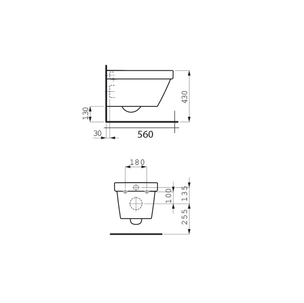 Vägghängd WC-skål utan sits. Bultar c/c 180 mm. Hårdsits med Soft close och Quick release köps separat.