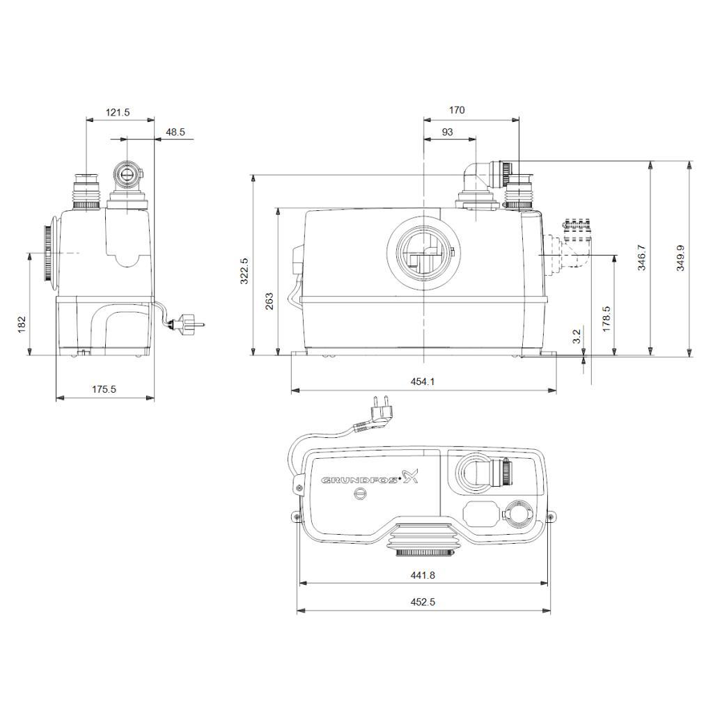 Avloppspumpstation med inbyggd kvarn för WC och tvättställ