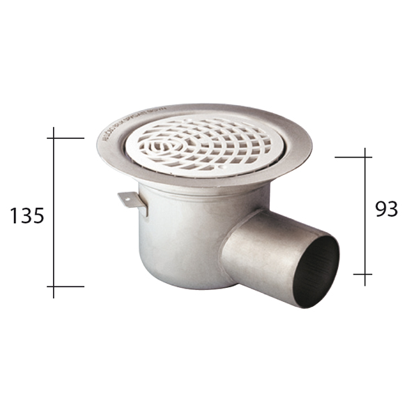 Rostfri golvbrunn med uttagbart vattenlås av plast.Flöde 1,2 l/s.