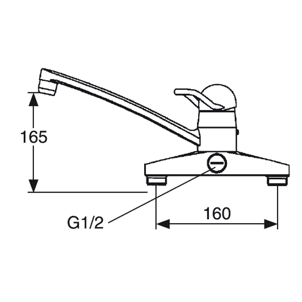 Disklådsblandare 160 c/c med pluggad 1/2" ansl. för extra vattenuttag. Omställbar mellan KV & VV, inställd på KV. 23 mm hål i bänk.