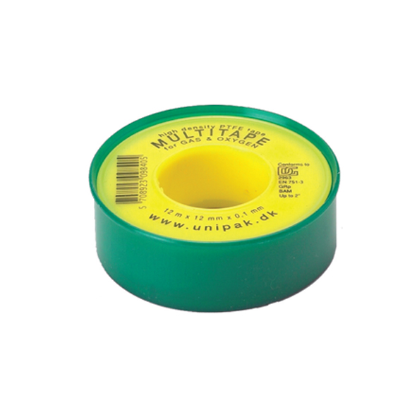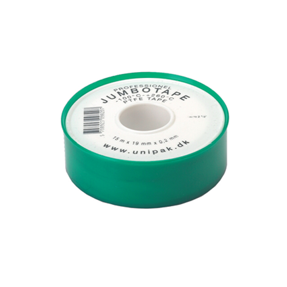 15 m x 19 mm x 0,2 mm (densitet: 0,6g/cm3 ) Lämpar sig väl för anläggningar med vatten, tryckluft och ånga. Mycket stark