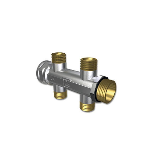 I förnicklad avzinkningsbest. mässing, påbyggnadsbar för värme och tappvattensystem.