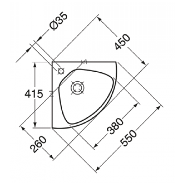 Hörntvättställ 7327-98 555x450 mm