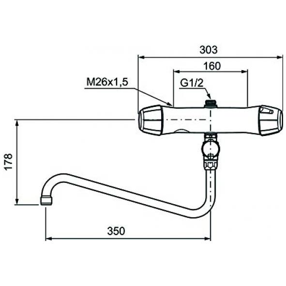 160 c/c termostatblandare med backventiler och svängpip.