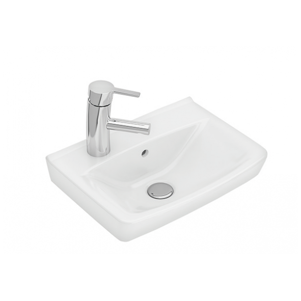 Tvättställ för konsol- (195 mm) eller vägghakemontage. Blandare & bottenventil ingår ej.