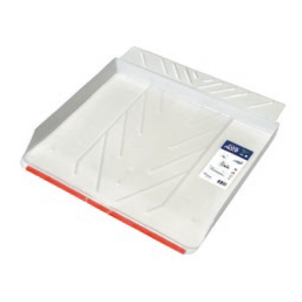 Placeras under diskmaskinen. Eventuellt vattenläckage leds fram för att bli synligt.